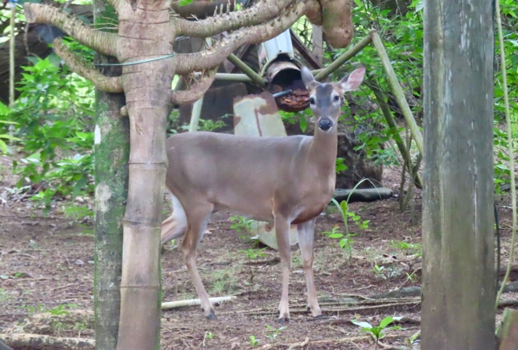 Our second day at Playita was much like the first. We ate at the restaurant and communed with the animals. The house deer came by for a few bites of corn. And the macaws flew over to examine a potential nesting site set up in a tree next to our table. The weekend merry makers were gone and the environment had a new tranquility that you could sense.