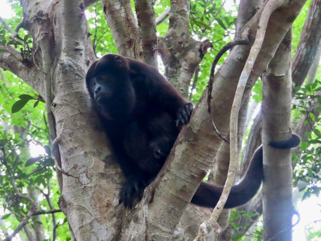 We heard the monkeys calling from the trees out back and walked over to watch them along with some young people visiting from Virginia. The kids were fun to talk to and the monkeys kept us all entertained. There were old males sitting aloof keeping an eye on their tribe, moms with babies riding on their backs and the young males, all curious and energetic. A good sized troop that held our attention for a while.