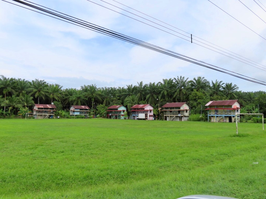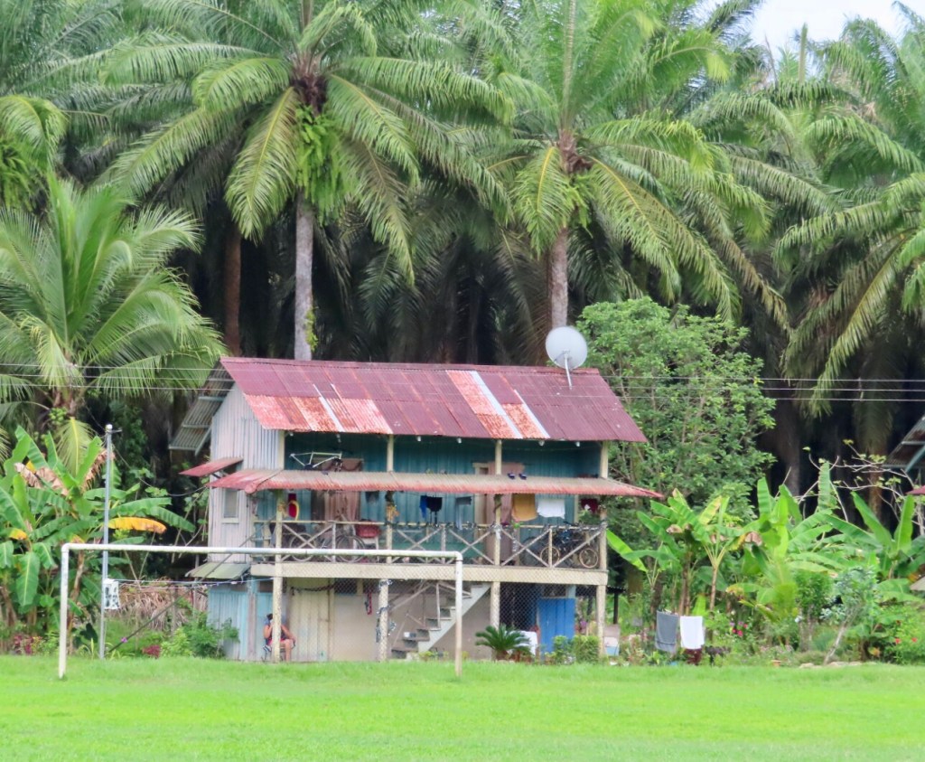 Along the highway, small company housing tracts sit with a horseshoe of fifteen to twenty colonial plantation houses circling a playing field. Every few miles another group of worker houses dots another soccer field. Children play on the porches as the families work the trees.