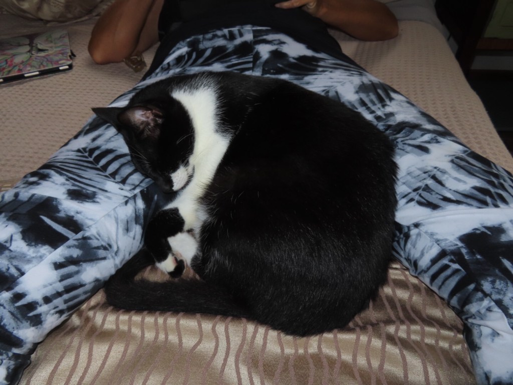 After a run to the fish market, our friend Jeff came over for a barbecue and to hang around the patio. The neighborhood cat quickly realized we were home and has returned to the house to declare herself queen of the castle once more.