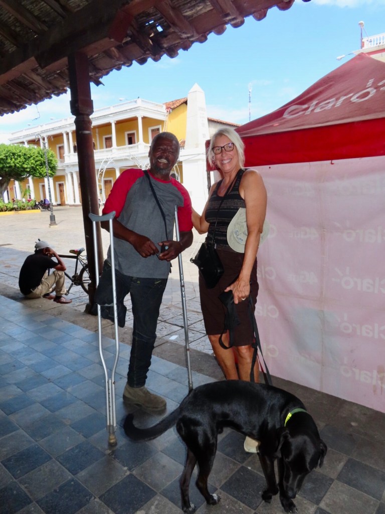 We didn’t stay more than a half hour before we drove into the heart of the city and parked next to the cathedral in front of the main park. An orange vested entrepreneur promised to keep an eye on the car so we stepped over a sleeping vagabond and walked along the cobblestones until we found a small restaurant facing the large colegio across the walking street. I felt a little entitled feeding my dog a chicken breast while a hungry beggar laid on the sidewalk not 50 meters away. Lots of bikes and foot traffic to watch as we sat and enjoyed our lunch. The self proclaimed poet of Bluefields, a Creole man with one leg, visited our table and recited a beautiful love poem for PJ and I. John Oliver was easygoing and humble and it was a pleasure meeting up with him. We finished up our meal and headed for the park slipping a handful of Cordobas into the palm of the old gentleman resting on the sidewalk as we passed.