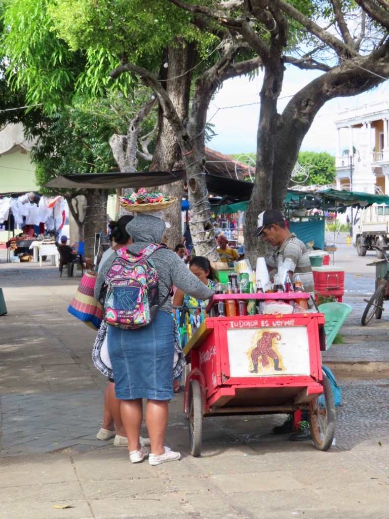 The park was hopping and Christmas decorations were getting set up all around. Food carts dotted the perimeter and souvenir stands were hustling gringos to come on in. Being the tourist that I am, I bought a Nicaragua cap to add to the collection having fun with the lively sales lady as she tried to get us to add more to the cart.
