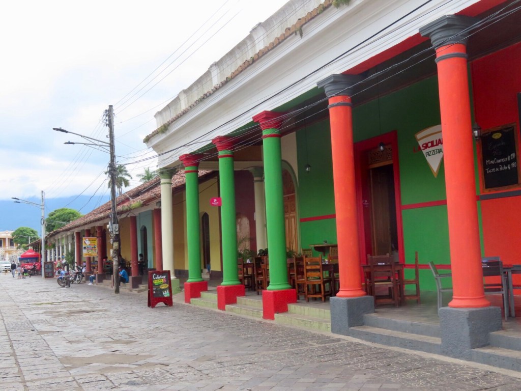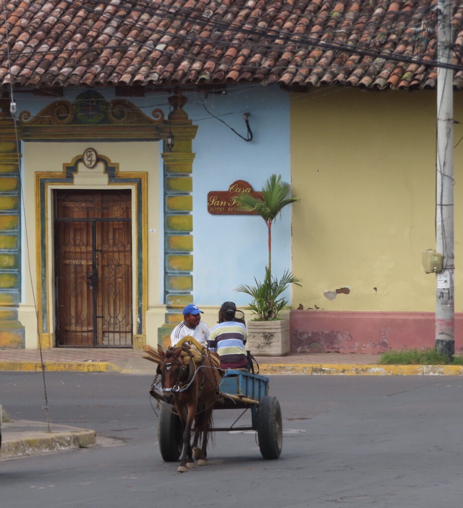 their lush internal courtyards and big wooden doors. The downside is all of the touts and hustlers trying to work you for a buck. After buying my Nicaragua hat, a tour salesman followed us down the street aggressively pushing me to give him my old cap. It’s my souvenir from Panama so I wasn’t giving it up. About half a block later, he gave up and we turned the corner walking down the hill.