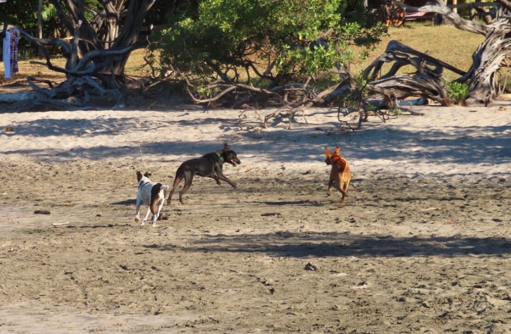To the south, we arrive at the surf destination of Playa Negra. Lots of hip, cool gringos making the scene doing their best to out-“local” the next guy. The new retirement destination for us geriatric ocean lovers. Gone are the days of shuffleboard at Leisure World as our generation refuses to give up the ghost. Negra always provides a few dogs for Oso to play with and the holiday season has brought throngs of people, both Tico and gringo, to play in the warm waters and ring in the new year.