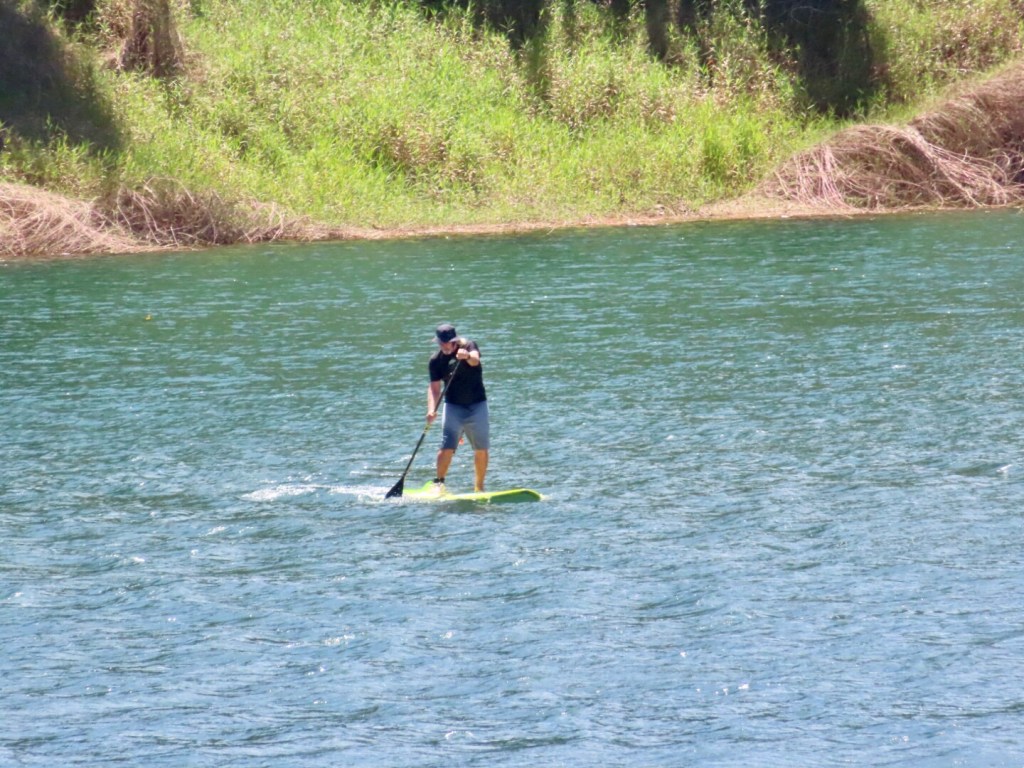 We did a little online homework and resting afterwards before hitting the lake for another paddle. PJ went first while Oso and I played around on the shore. She headed back up onto the cove into the wind. By the time she came back around to trade off the board for the dog, the breeze had come up quite a bit.