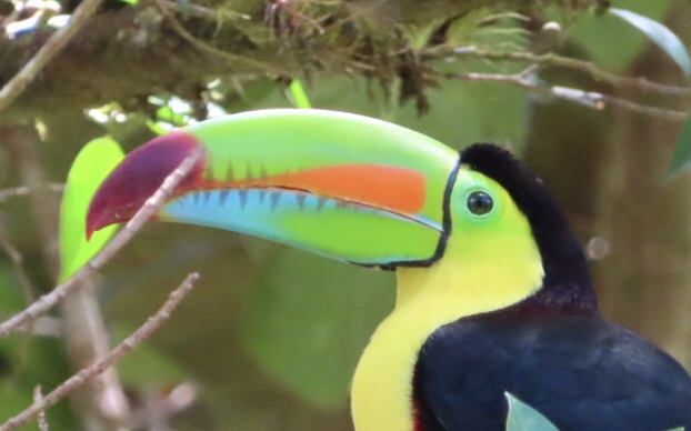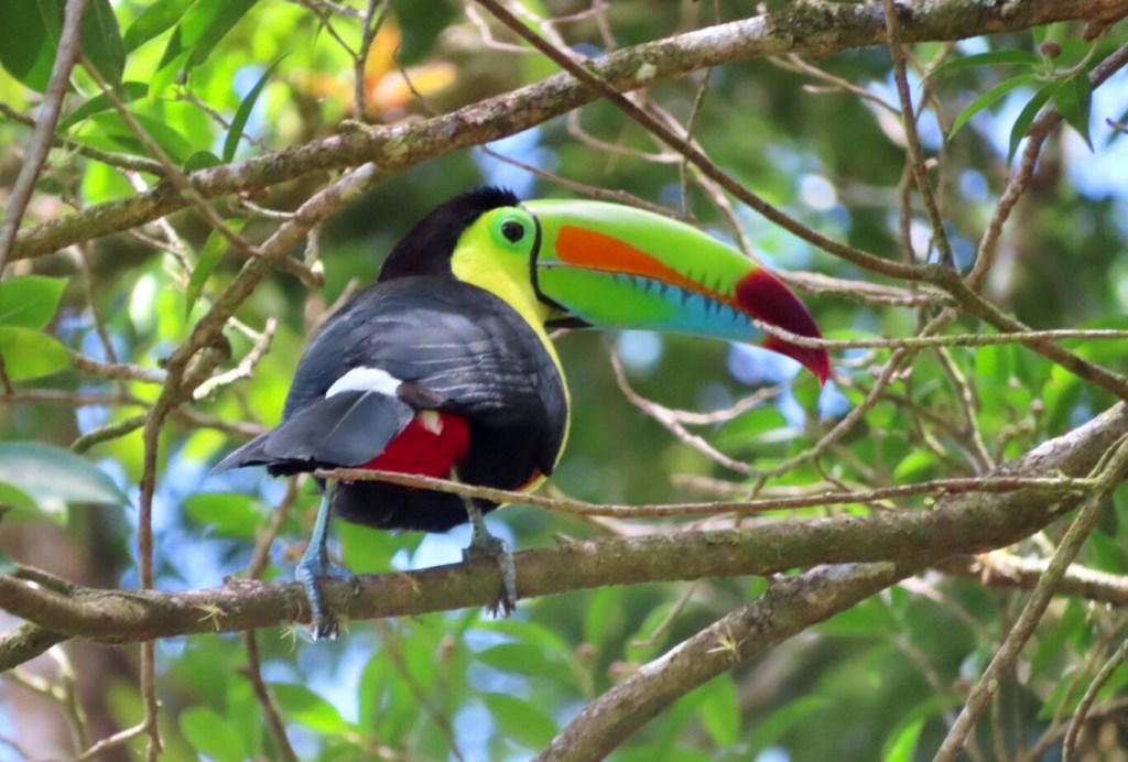 Back at the casita, we got ourselves packed and prepared for a cruise up to La Fortuna to have a gander at the volcano and see how much the once small village has grown over the years since I came with the Takayamas to see the lava glow in the night. But first we got distracted by some toucans calling from the big tree out front.