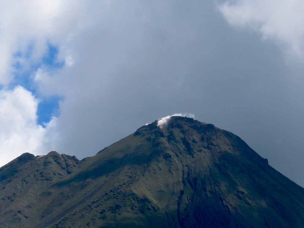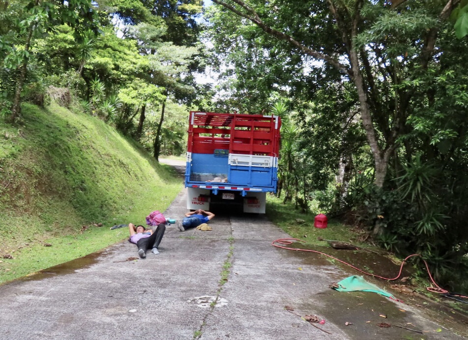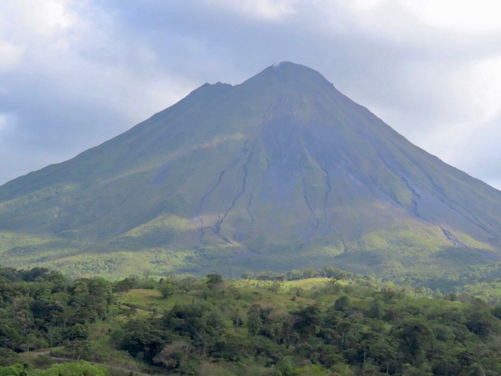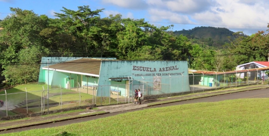 The Arenal volcano loomed large over the landscape as we drove over the dam. We pulled off at the end where the fruit cart is then drove up into the hills a few kilometers looking for an overlook. We came to an entrance for the national park but Oso wasn’t welcome and we were sent packing back down the rugged dirt track. We stopped at the stand back by the highway and PJ had her first Costa Rican granizado, the local answer to a Hawaiian shave ice, complete with powdered milk and condensed milk to top off the red flavored syrup.