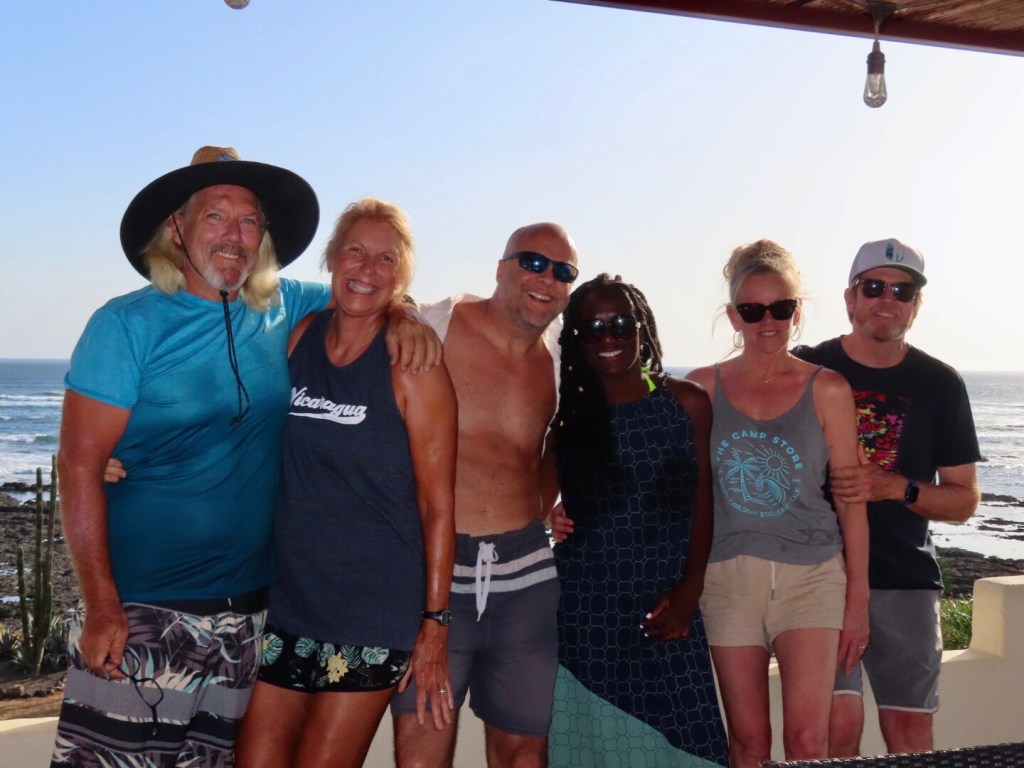 When Chris and Ama were at the airport in Los Angeles waiting for their Costa Rica flight, they were surprised to spot another friend of ours, Pat, boarding the same flight for Liberia as they were. They spoke briefly and Pat said that he, too, was going to Playa Negra. Small world. It turns out his rental was in our neighborhood about six doors down from our house. He had the whole family and a packed schedule, but we did manage to catch him and his beautiful wife, Lisa, a couple of times for quick visits. Awesome to see them, check out their oceanfront digs and get to know them.