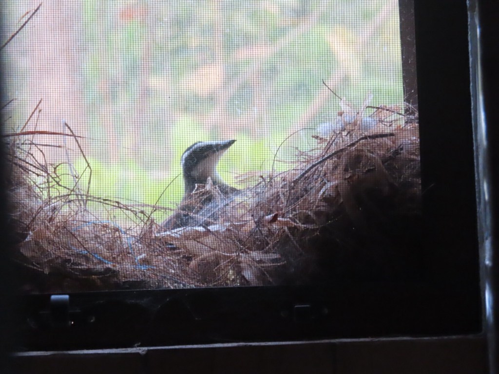 Yesterday, the last youngster flew the coop. He had gotten his foot caught up in the twigs of the nest so I removed the screen and freed him. Now, I still haven’t broken the habit of walking softly but it’s so silent now. No baby tweets or shrill warnings. We’ll just have to wait for next spring because it seems they always come back. This is our third brood. Adios little buds.