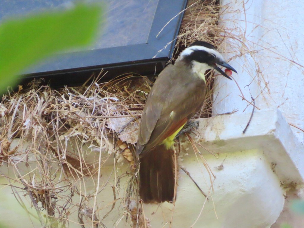 For the past several months we’ve had a kiskadee condo in our main bathroom window. The glass opens at a slant creating a perfect overhanging roof for the baby birds. Every time you go to use the bathroom you are scolded loudly by the adult birds. I always walk on eggshells hoping not to be castigated.