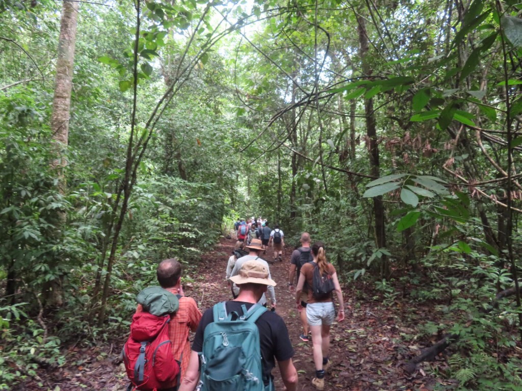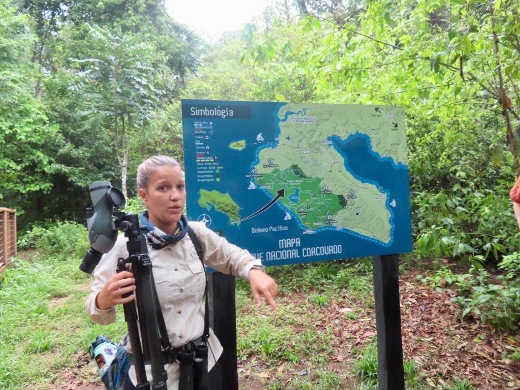 The captain rushed in over the incoming surf, spun the boat around and we all hopped into the knee deep water to make our way into the park. Our guide was Estefani, a sweet young lady from the local area who did the official coursework to become a park guide for the government. Each group was comprised of eight people to a guide. And there were a lot of us. No feeling you are alone among the natural elements in Corcovado, it’s you and 200 of your best friends trudging the road of happy destiny through the park.