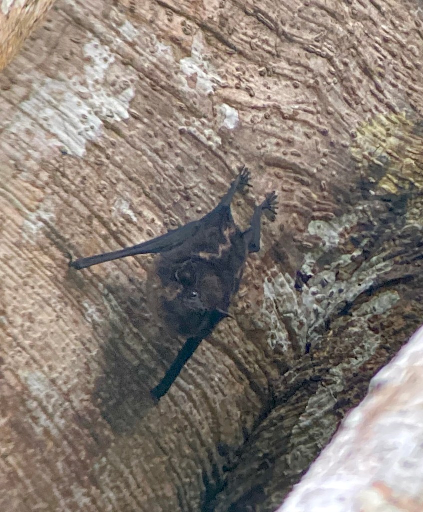 But, even still, the animals didn’t seem to mind. We quickly came upon another group admiring a cassowary bird in the bushes and we all gathered for a good gaggle too. Estefani had keen spotting skills and pointed out critters we never would have had a clue were there. A sloth you could barely discern in the foilage of a ficus, howler monkeys, spider monkeys and some bats hidden up in a strangler fig. We wandered the jungle hunting for wildlife beneath gray skies threatening more rain.