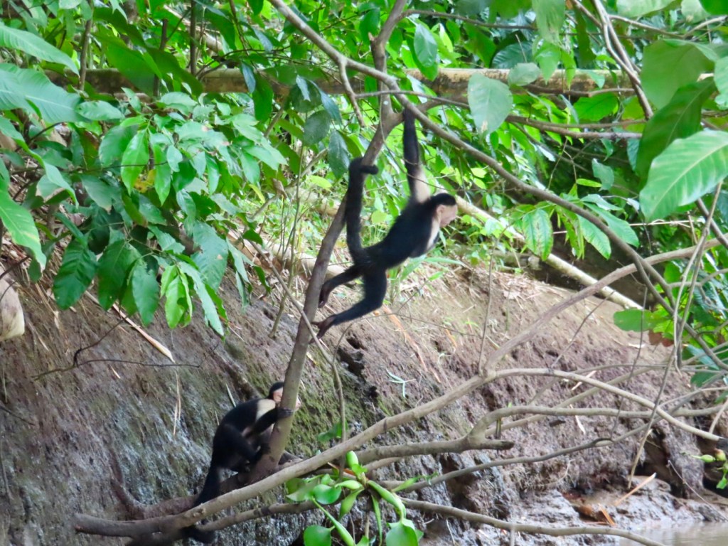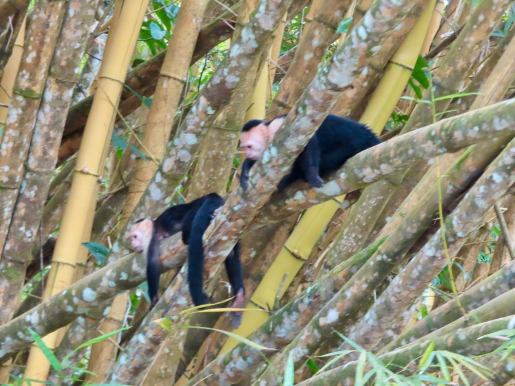 The underlying backdrop of the reserve in Sierpe is old palm plantations and cultivated bamboo. The secondary forest has grown up around them, overshadowing the palms but the bamboo has grown wild in some areas and is a haven for white faced monkeys, the capuchins. We came upon a huge group They were playing around, wrestling and chasing each other from tree to tree. We parked the boat and watched for a while. Awesome stuff. Carlos gave the monos a hardy “adios amigos” and we turned the bow back towards the docks. Antonio picked up the pace and the cooling wind blew in our sunburned faces. A fun few hours out on the river.