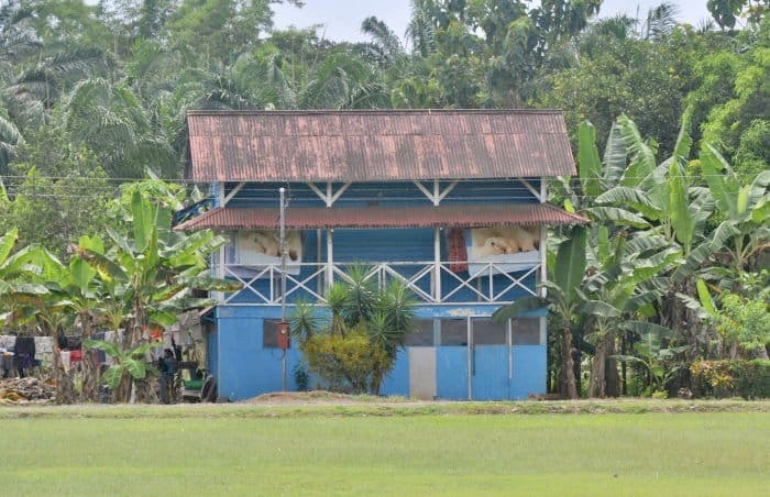 After a short stretch along the Costanera Sur, the paved highway from Panama to Jaco, we came to the turn off to the Rio Sierpe. Palm country, the dominion of American banana republicanism. Old wooden row houses surround central grass common areas and palmeros still haul the palm oil berries to the rendering plant with ox and water buffalo pulled carts.