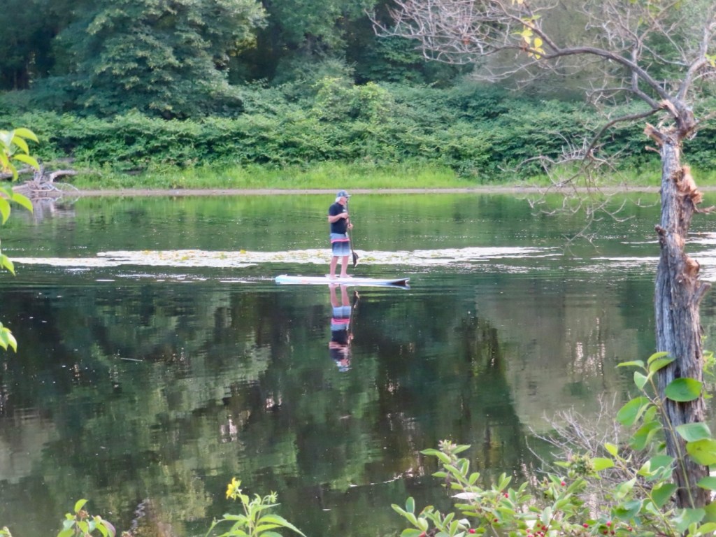 Day two at Two Rivers was a lot more relaxing. We slept in, sat and had coffee then tossed the paddleboards off the dock and went for a long tour of the river and adjacent stream. A beautiful stretch of water surrounded by forest on both sides. Good exercise and exploration. A little over four miles.