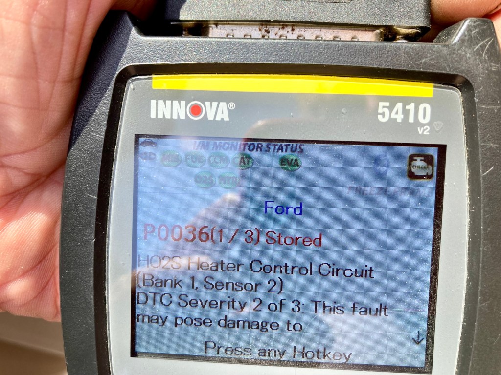 On the drive into Pennsylvania yesterday, the check engine light decided to rear its ugly head. The rig seemed to be running fine, so I was guessing some sort of emission code. I pulled off the interstate and checked the OBD2 reading. A code for p0036 came up on the reader. Not heating the O2 sensor downstream from the catalytic converter. Probably something thanks to my pot smoking mechanics in Warwick who installed the cat. I cleared the code but it returned about 1/2 hour later. I’m hanging at a campground in Mercer PA waiting for the Ford dealer on Monday.