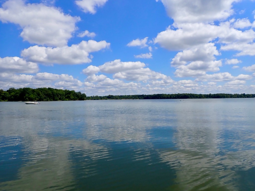 It was easy highway driving through Akron and down to Alum Creek State Park. It’s a nice set up with spacious spots and lots of trees. I picked a spot right against the lake and got myself set up. Needing a refresher after a long morning, I grabbed the paddle board and jumped in the lake, following the contours of the coves and inlets along the left bank. Water is kind of green, but I jumped in anyway. Lots of boaters and skiers getting wet so it can’t be too bad. Smells better than Lake Ontario.