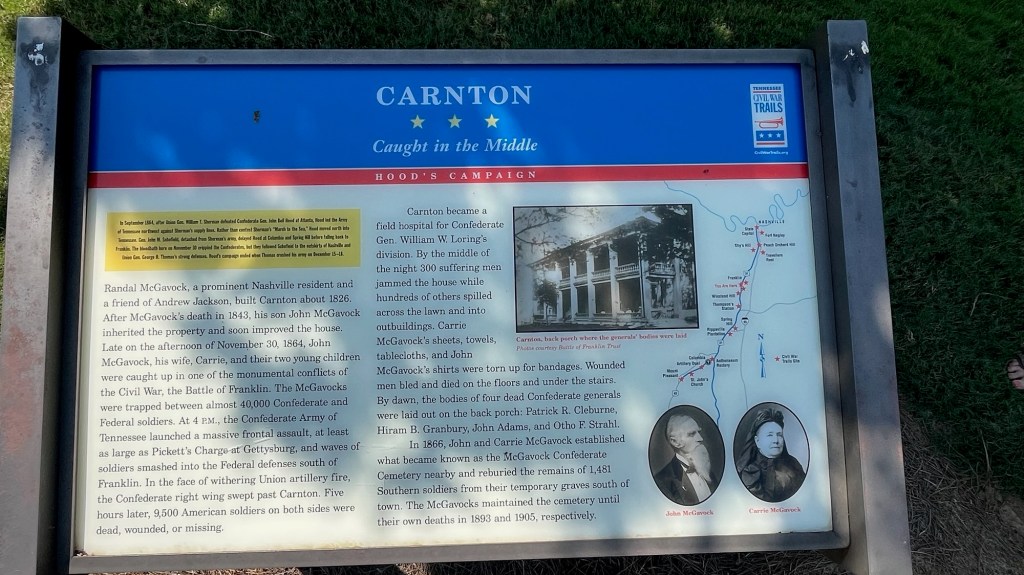 Drove over to Carnton, where confederate soldiers were treated after defeat at a crucial, bloody battle for Franklin in 1864. The McGavock family was caught in the middle. After hiding in the basement through the battle, they found thousands of wounded and dying soldiers. They treated those they could and dedicated themselves to seeing to decent burials for the others.
