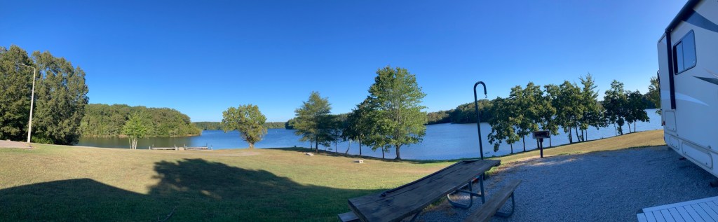 It was an hour of skinny little backroads through the farmland and trees until I reached the highway going west. Continued until about five then stumbled upon Pin Oak lake state park in the Natchez Trace forest. Awesome state park. The host, Tommy, saw me pull in looking lost and set me up with the end spot by the dock right on the lake. No one on the other side either. Probably one the sweetest camps I’ve had in my travels.