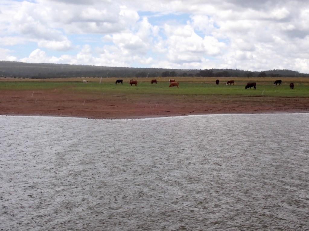There was a light headwind starting out paddling towards the dam. There were a lot of people out fishing and camping around the shore. A short squall passed through at about the 3 mile mark.