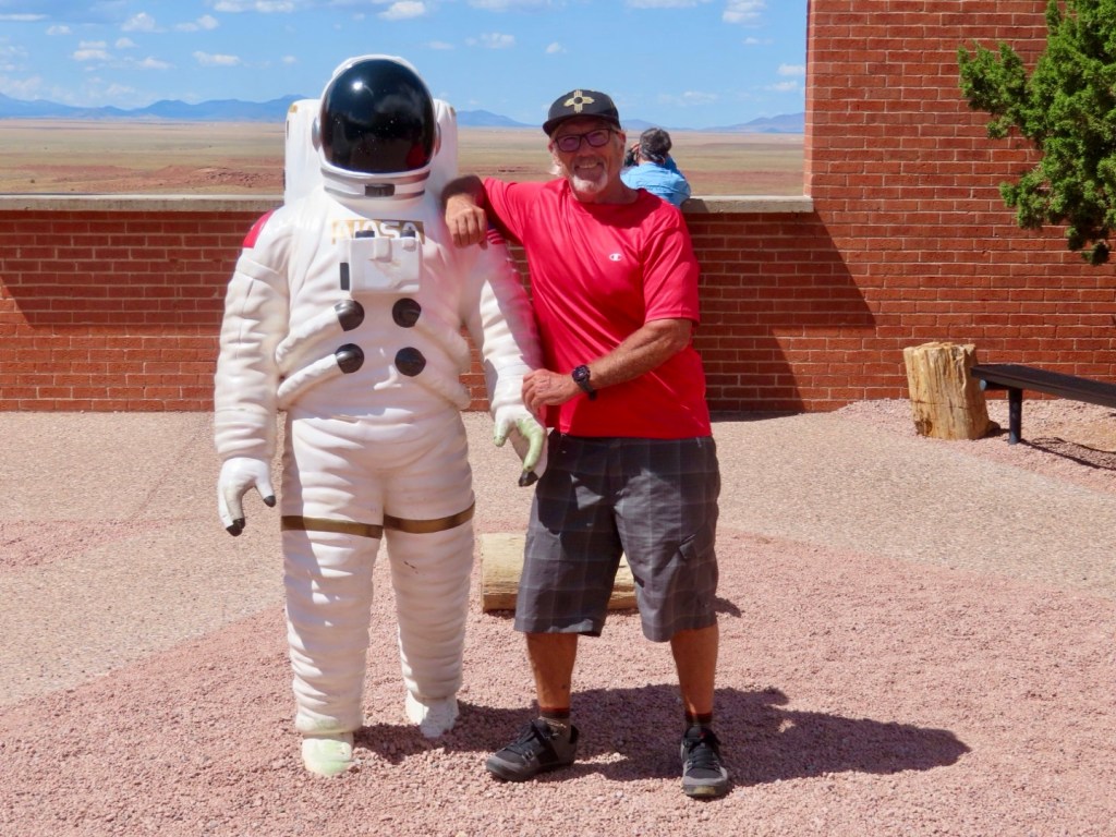 Before I knew it, I was standing on a corner in Winslow, Arizona. The poor humble berg is trying to garner some tourism from the old Eagles tune. A billboard for the freshly opened Winslow Hotel claimed they were “the new kid in town”. I joined a few other tourists wandering the block at the Standing on a Corner park. The flatbed Ford reflected in the mural painted on the wall. I could only hang with Glen Frye so long before I had to get back on the road to more extraterrestrial adventures.