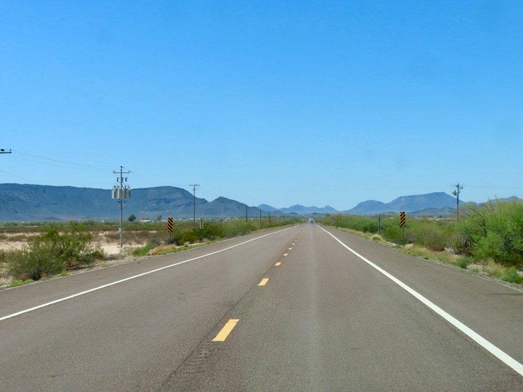 Long, straight, boring, bumpy asphalt through the most barren desert. Lots of closed businesses, abandoned trailers and yards with a dozen rusting automobiles decorated the landscape. Six miles before reaching the I-10 interchange just outside of a dusty little backwater named Brenda AZ, the tire blew. A loud explosion, sounds of breaking undercarriage and a little swerve in the curve. Treads we’re flying across the blacktop as I limped onto the shoulder.