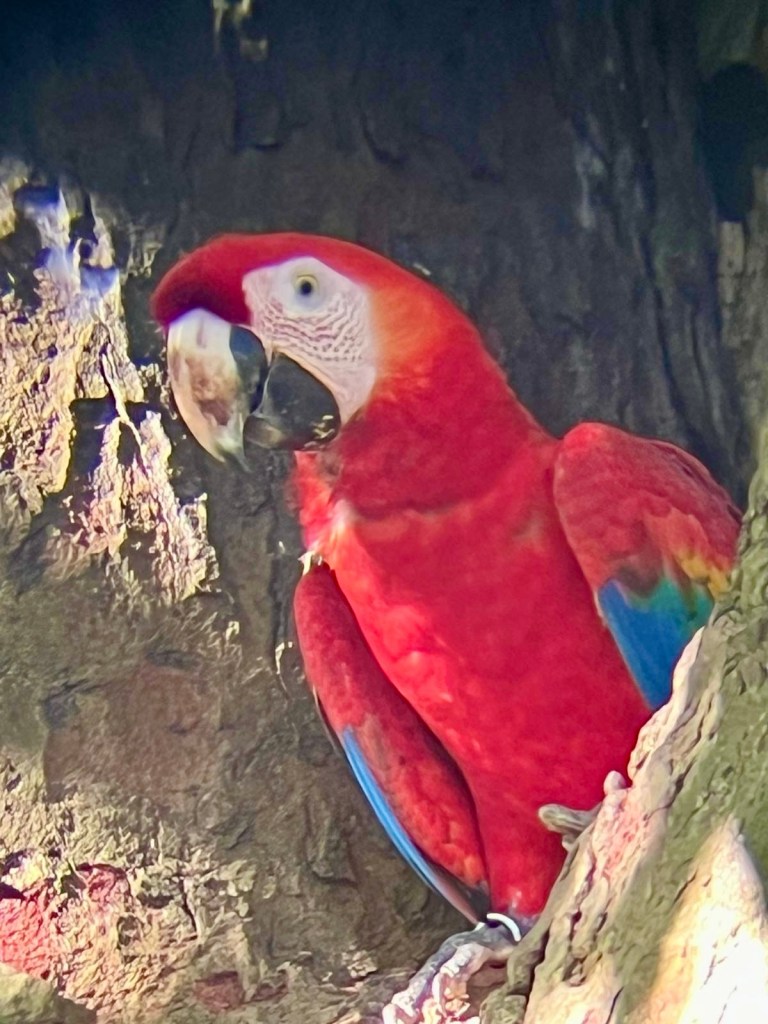 We returned to the cars early and followed Antonio over to the beach at Tarcoles to see the scarlet macaws that come every day to eat almonds from the grove at the beach parking area. Tonio left us there and we wandered around the beach and park area by the trees. Absolutely beautiful sunny day.