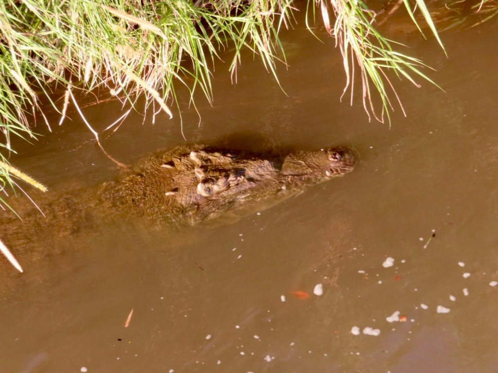 Having bypassed lunch to keep driving, the buffet at the crocodile restaurant was looking pretty good. We had the chicas at the steam tables overload a couple of plates containing a wide variety of Costa Rican delicacies. From platanos is to chicharrones, we sampled a bit of almost everything there was behind the glass cases.
