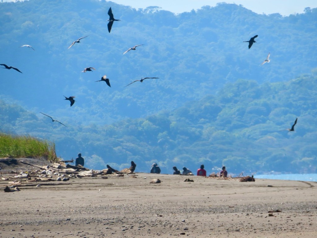 Frigates were dominating the beach flats, filling the trees and harassing the fishermen cleaning their catch.