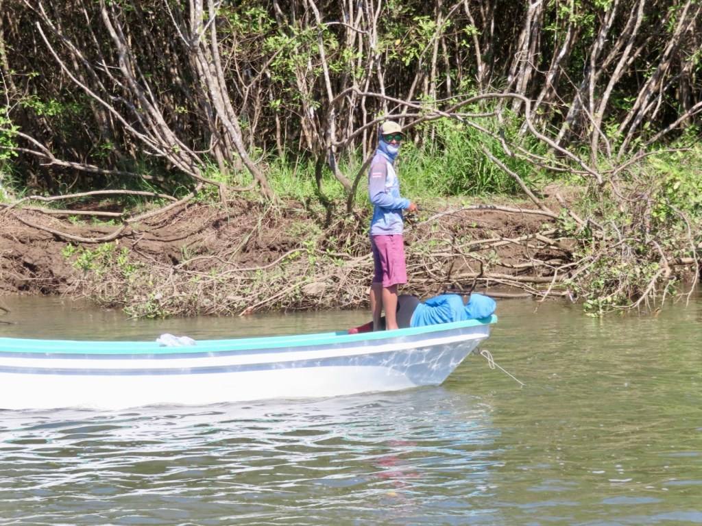 After gathering our gear, we drove a few short kms down to the river where Gerardo was waiting to navigate the muddy waters of the Rio Tarcoles for us. We had a large boat all to ourselves. Probably forty seats for us crew of three.